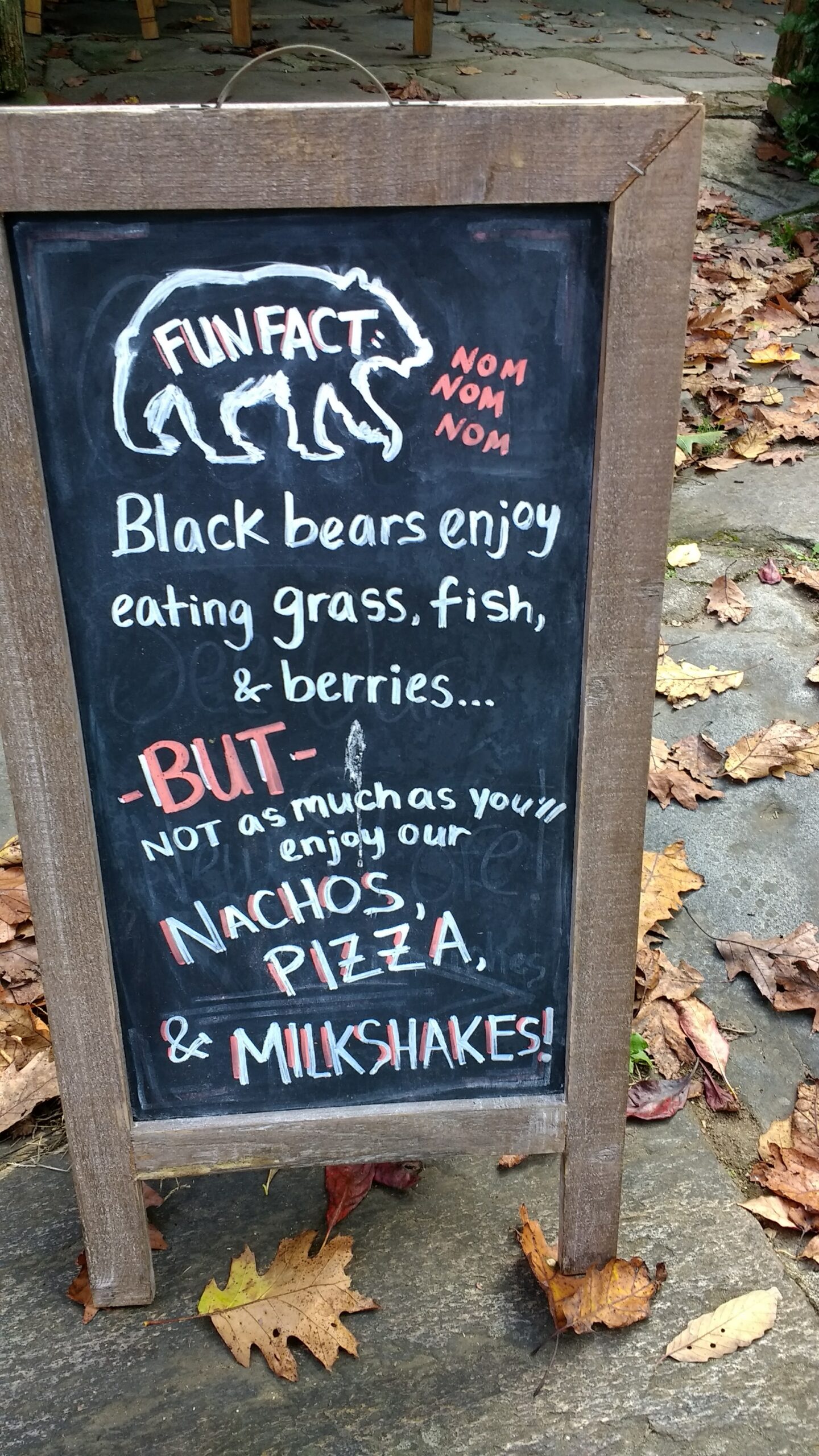 We sit outside and drink our coffee where a young couple and their two children are finishing up their lunch. I don’t know how quickly bears can ‘swoop’, if indeed that’s what they do, and although no-one seems concerned, it’s probably best to keep maybe a quarter of an eye on the woodland behind the cafe seating area. I think bears probably ‘lumber’ rather than ‘swoop’, which would give us time to run to the cafe if one should take a liking to the dregs of my Americano. There’s a heavy-weight, bear-proof trash can just outside the cafe which needs two deft, humanoid hands with opposable thumbs to open it. It also proves to be Jane-proof.