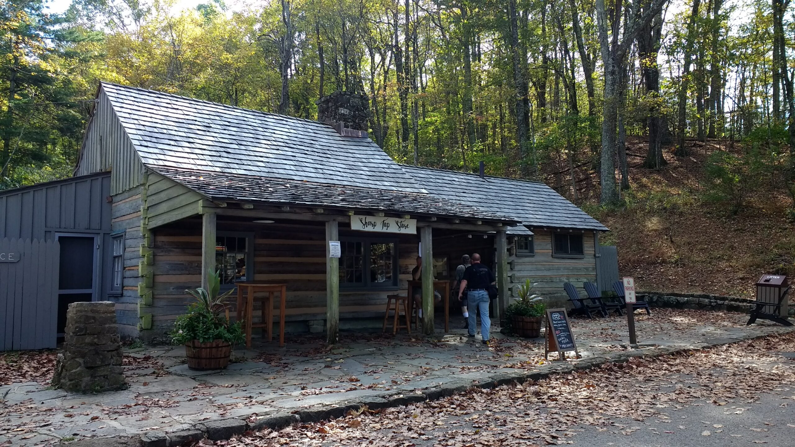 A few miles more on the Blue Ridge Parkway and we arrive at the Peaks of Otter visitor lodge where we book to take the 1.5 mile bus ride up to Sharp Top Mountain. We could walk, but time, footwear, heat and lazyness make it an easy choice. And it is very steep.